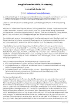 Ein Text der aufzeigt wie man Gruppen im Distance Learning auf der gruppendynamischen Ebene leitet.